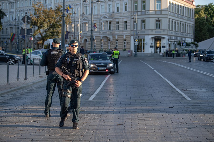 10 июля, Вильнюс. Сотрудники полиции на улице в Вильнюсе, столице Литвы, где 11-12 июля проходит саммит НАТО. /Фото: Синьхуа/