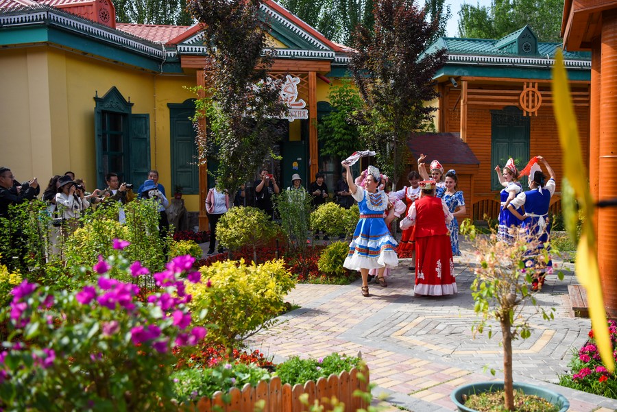 19 мая 2023 года, жители квартала "Люсинцзе" города Инин Синьцзян-Уйгурского автономного района /СУАР, Северо-Западный Китай/ танцуют, приветствуя туристов со всей страны. /Фото: Синьхуа/