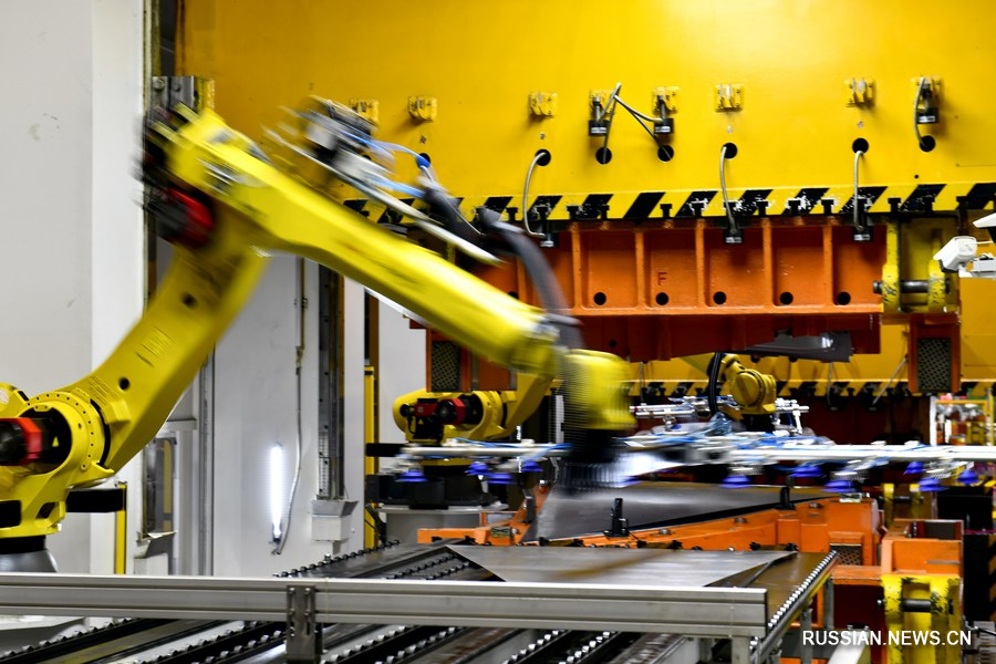 29 июня 2023 года, промышленный робот, обрабатывающий автозапчасти на заводе автопроизводителя ZXAUTO в зоне высокотехнологичного промышленного развития города Жичжао провинции Шаньдун на востоке Китая. /Фото: Синьхуа/