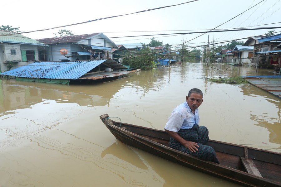 9 октября, Баго, Мьянма. Мужчина на лодке в затопленном районе. /Фото: Синьхуа/
