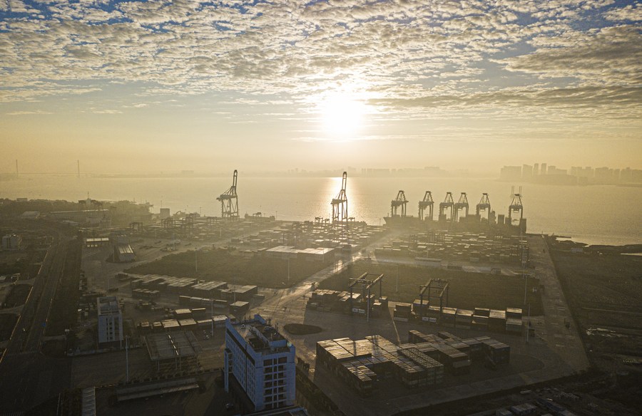 1 января, провинция Хайнань, Китай. Озаренная лучами восходящего солнца зона экономического развития Янпу в провинции Хайнань /Южный Китай/. /Фото: Синьхуа/