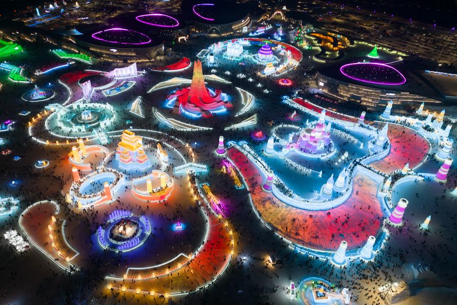 "Большой мир льда и снега", построенный на берегу замерзшей реки Сунхуацзян, представляет собой знаковый тематический парк, который этой зимой использовал 250 тысяч кубометров льда и снега для предоставления посетителям разных видов зимних развлечений. С декабря 1999 года, когда парк был впервые открыт в ознаменование наступления миллениума, он был возведен в 25-й раз.