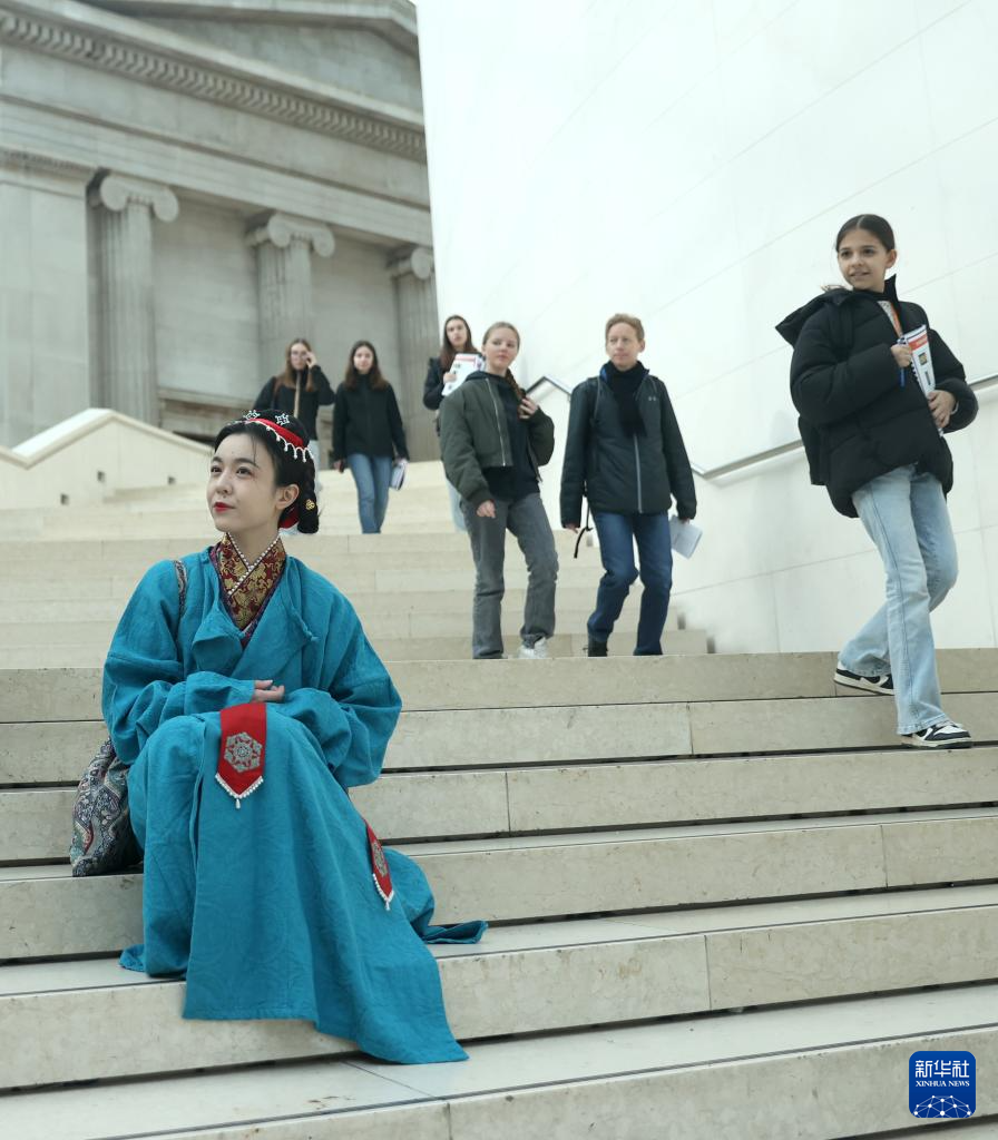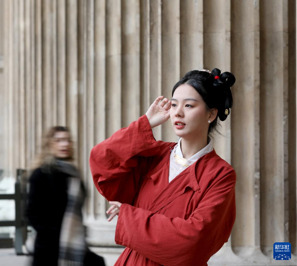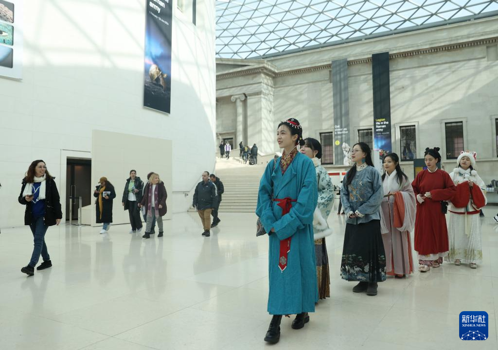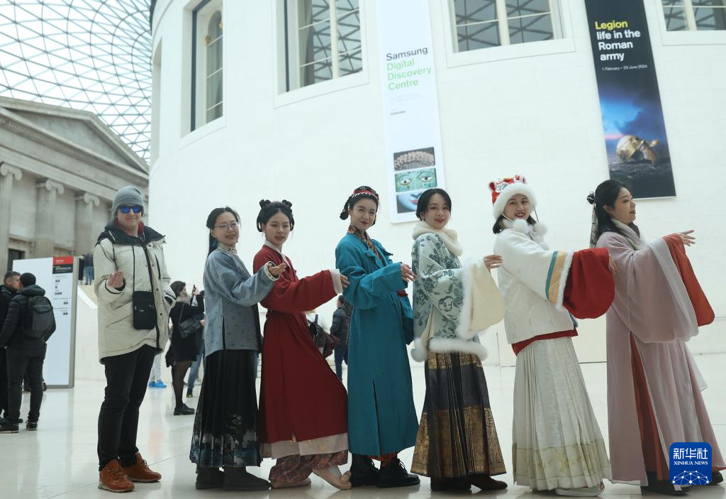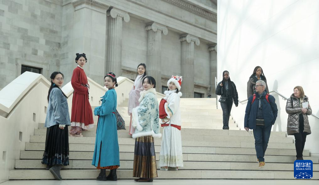 На фото от 25 февраля -- Любители Ханьфу в этой китайской традиционной одежде национальности Хань в Лондоне познакомили местных жителей и туристов с китайским праздником Весны /Чуньцзе, традиционный китайский Новый год по лунному календарю/ и традиционной китайской культурой. (Синьхуа фото)