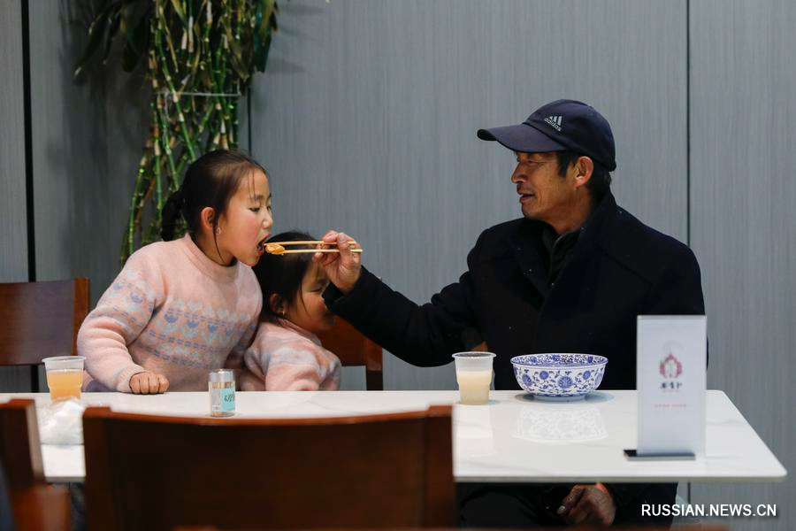 23 декабря 2023 года, люди обедают в ресторане в уезде Цзишишань провинции Ганьсу на северо-западе Китая. /Фото: Синьхуа/