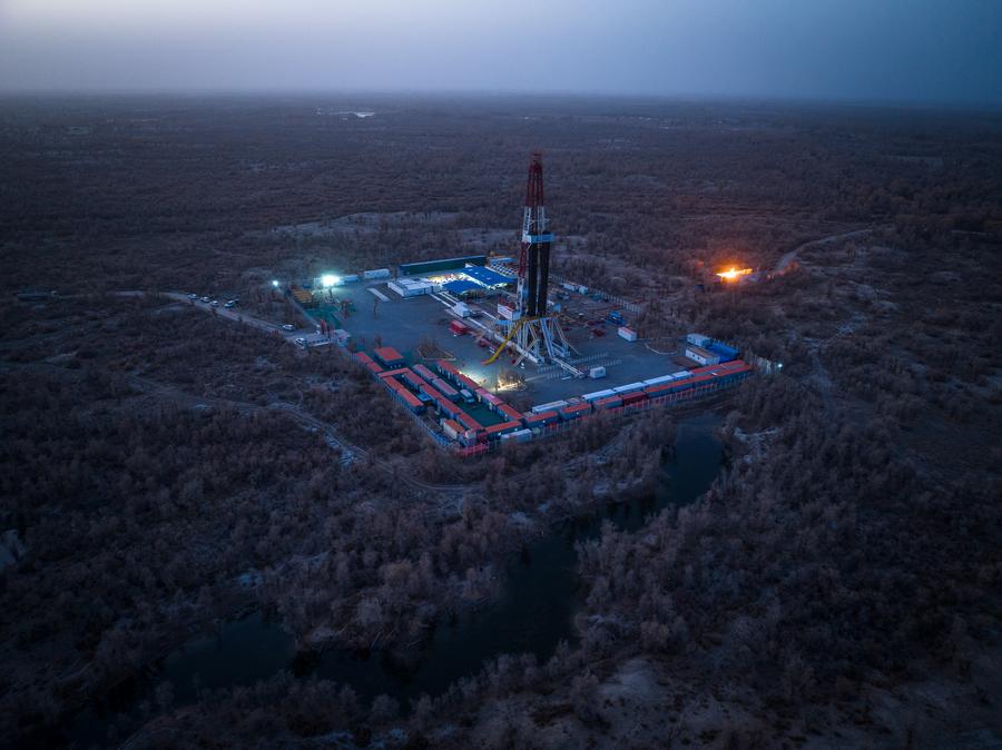 15 ноября 2023 года, на аэрофотоснимке запечатлена скважина Yuejin 3-3XC китайской нефтехимической корпорации "Синопек" /Sinopec/ на территории Таримской впадины Синьцзян-Уйгурского автономного района на северо-западе Китая.