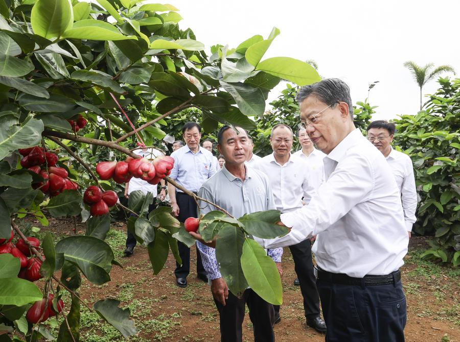 Председатель ПК ВСНП Чжао Лэцзи во время посещения уезда Динъань /провинция Хайнань/ 29 марта /Фото: Синьхуа/