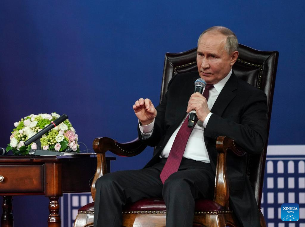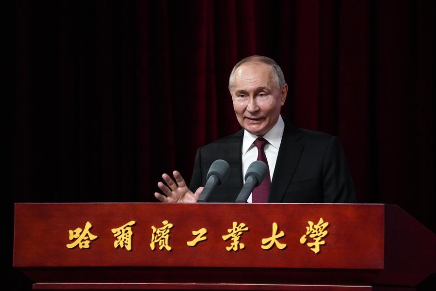Харбин, 17 мая /Синьхуа/ -- Президент России Владимир Путин в пятницу посетил Харбинский политехнический университет в провинции Хэйлунцзян на северо-востоке Китая и провел встречу со студентами и преподавателями этого учебного заведения.
