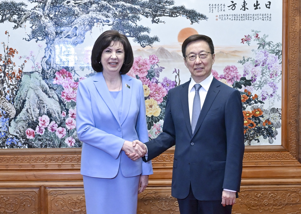 Пекин, 29 мая /Синьхуа/ -- Заместитель председателя КНР Хань Чжэн встретился в среду в Пекине с председателем Совета Республики Национального собрания Республики Беларусь Натальей Кочановой.