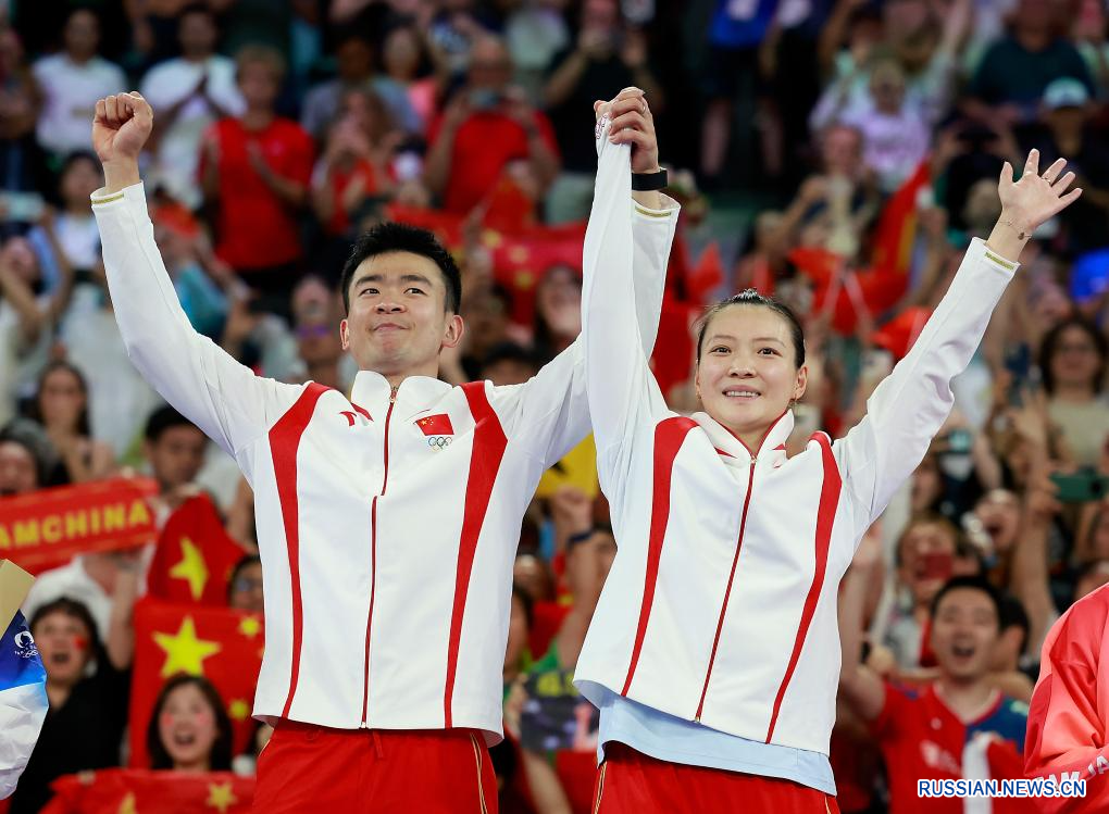 Париж, 2 августа / Синьхуа/ -- Китайская пара Чжэн Сывэй/Хуан Яцюн в пятницу завоевала золотую медаль в соревнованиях по бадминтону в смешанном парном разряде на Олимпийских играх в Париже после победы в финале над парой Ким Вон Хо/Чон На Ын из Республики Корея.