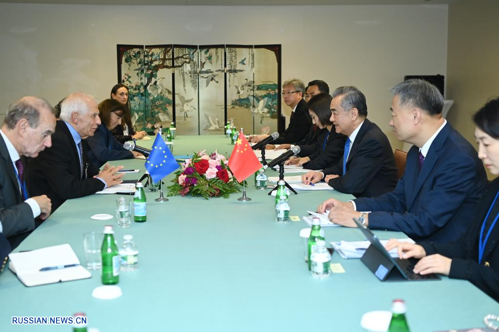 ООН, 25 сентября /Синьхуа/ -- Член Политбюро ЦК КПК, министр иностранных дел КНР Ван И в среду встретился с верховным представителем Европейского союза /ЕС/ по иностранным делам и политике безопасности Жозепом Боррелем в кулуарах 79-й сессии Генеральной ассамблеи ООН в Нью-Йорке.