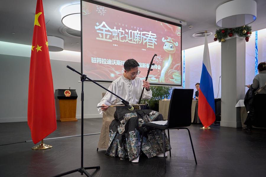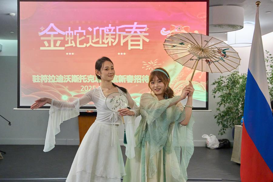 Владивосток, 14 января /Синьхуа/ -- Генеральное консульство КНР во Владивостоке вечером в понедельник устроило прием по случаю наступающего праздника Весны /Чуньцзе, традиционный китайский Новый год по лунному календарю/ под названием "Золотая змея встречает весну". На мероприятии присутствовали более 180 представителей китайских учреждений и предприятий, Института Конфуция Дальневосточного Федерального университета /ДВФУ/, китайских студентов, обучающихся в вузах России, и этнических китайцев.
