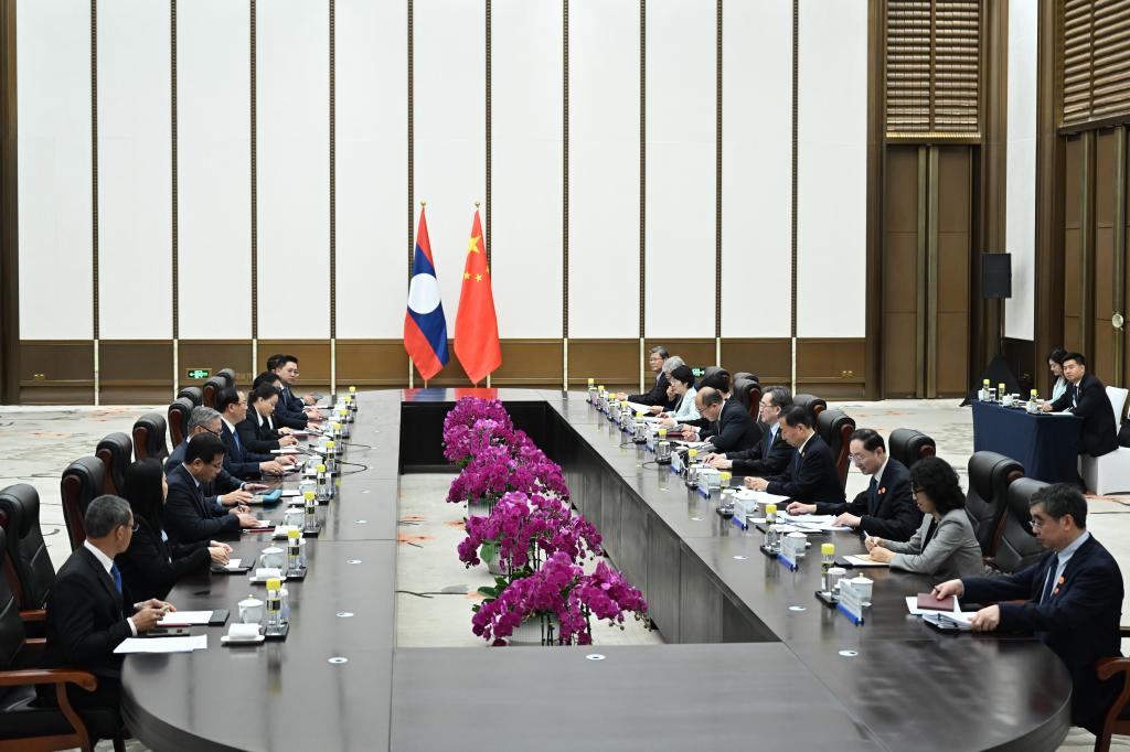 Дин Сюэсян провел встречу с премьер-министром Лаоса Сонесаем Сипхандоном. Дин Сюэсян сказал, что Китай готов совместно с Лаосом поддерживать друг друга в плане коренных интересов каждой из сторон для содействия практическому сотрудничеству в различных сферах.