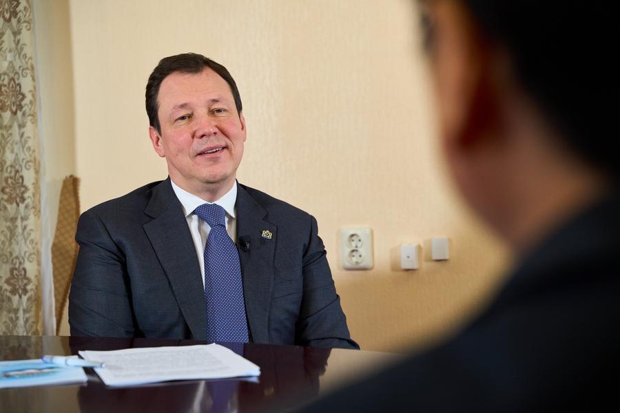 25 марта, Хабаровск, Россия. Первый заместитель председателя правительства Хабаровского края Сергей Абрамов дает интервью корр. Синьхуа. /Фото: Синьхуа/