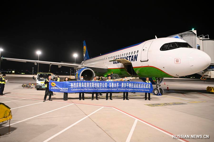 19 апреля 2025 года, самолет, выполняющий рейс HY571 по маршруту Фергана-Урумчи-Фергана, совершил посадку в международном аэропорту "Тяньшань" города Урумчи. /Фото: Синьхуа/