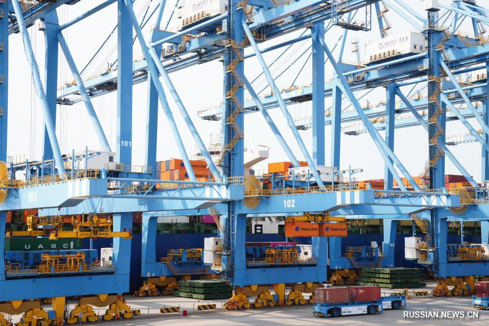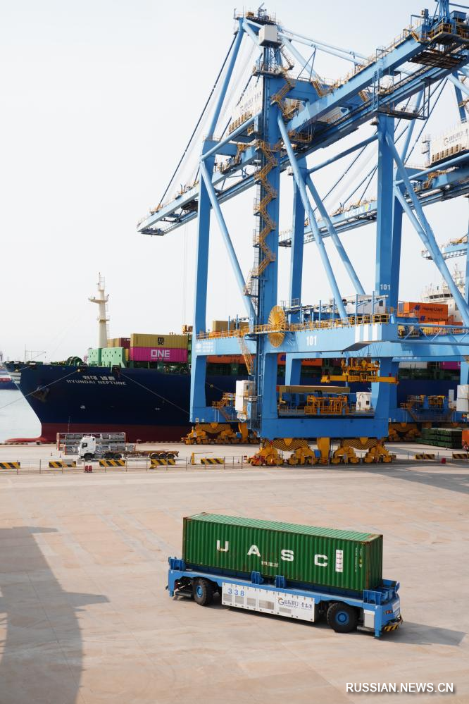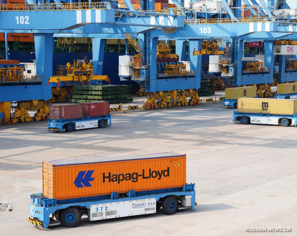 Автоматизированный контейнерный причал в порту Циндао провинции Шаньдун
