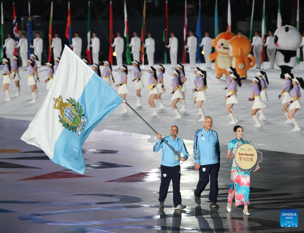 Чэнду, 7 августа /Синьхуа/ -- Член Госсовета КНР Шэнь Ицинь в четверг вечером на торжественной церемонии в Международном конференц-центре Тяньфу /"крыша Тяньфу"/ города Чэнду, административного центра провинции Сычуань /Юго-Западный Китай/, объявила об открытии 12-х Всемирных игр.