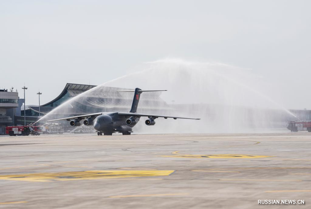 Военно-транспортный самолет Y-20 Военно-воздушных сил Народно-освободительной армии Китая /ВВС НОАК/ с останками погибших солдат приземлился в международном аэропорту Таосянь города Шэньян / адм. центр пров. Ляонин, Северо-Восточный Китай/.