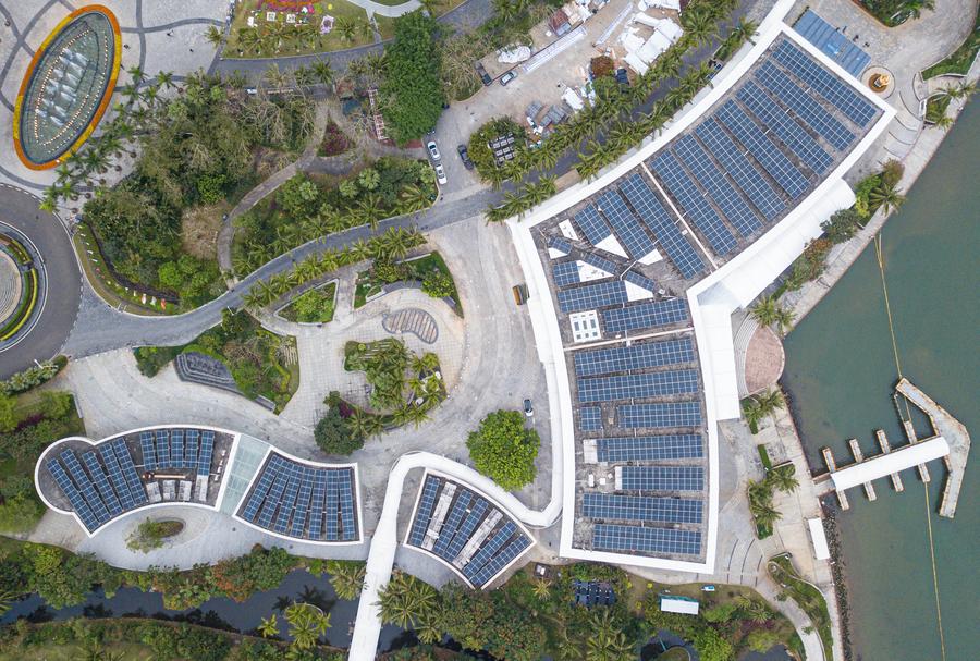 16 марта 2025 года, на фото запечатлены фотоэлектрические устройства на крышах медиацентра Боаоского Азиатского форума /БАФ/ и прилегающих к нему зданий в поселке Боао /пров. Хайнань, Южный Китай/. /Фото: Синьхуа/
