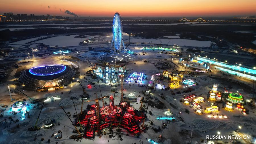 4 декабря 2025 года, строительная площадка тематического парка "Большой мир льда и снега" в Харбине /пров. Хэйлунцзян, Северо-Восточный Китай/. /Фото: Синьхуа/