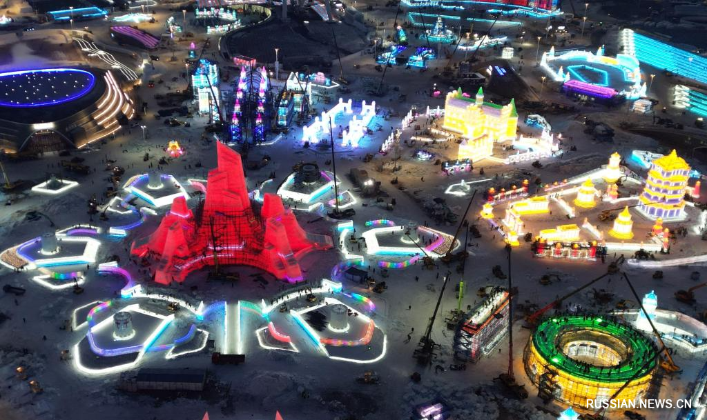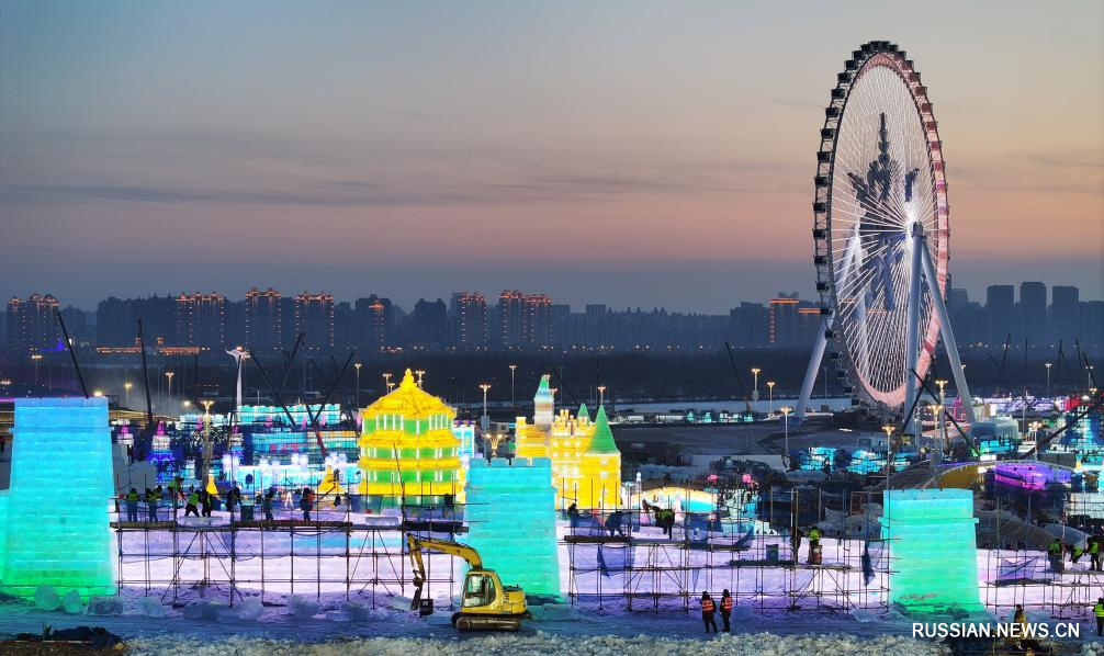 Харбин, 13 декабря /Синьхуа/ -- В настоящее время в Харбине /адм. центр провинции Хэйлунцзян, Северо-Восточный Китай/ интенсивно ведется строительство тематического парка "Большой мир льда и снега" для проведения 27-го одноименного фестиваля.