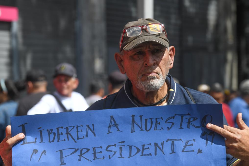 3 января, Каракас. Протестующий держит плакат во время митинга против нападений США на Венесуэлу. /Фото: Синьхуа/