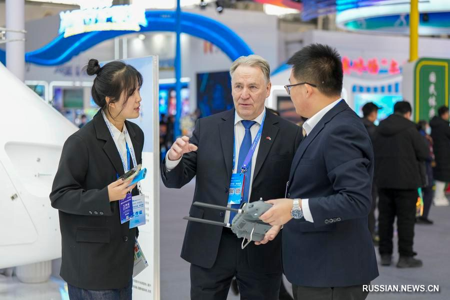 Ректор Харбинского инженерного университета Инь Цзинвэй представил на выставке последние технологические новинки своего вуза, в том числе беспилотные летательные аппараты для работы в полярных условиях и суда, оснащенные полярными топливными системами.