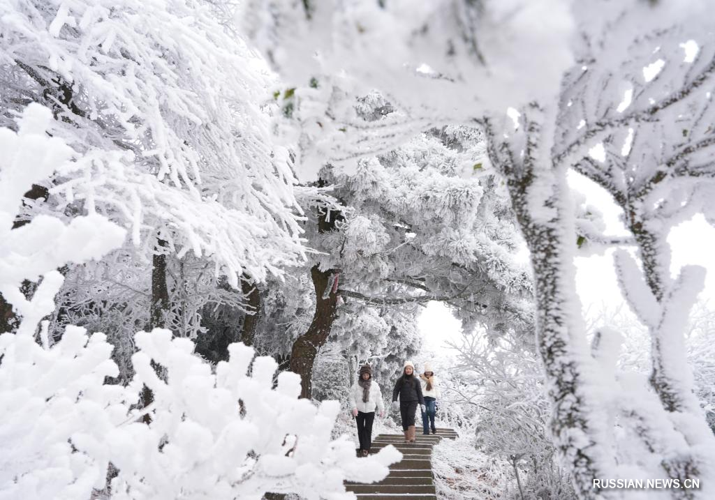 Хэнъян /пров. Хунань/, 24 января /Синьхуа/ -- В последние дни живописную местность горы Хэншань, расположенную на территории города Хэнъян /пров. Хунань, Центральный Китай/, накрыло белым покрывалом из льда и инея. Заснеженные гора и лес привлекают множество посетителей, которые приезжают сюда полюбоваться зимними пейзажами.