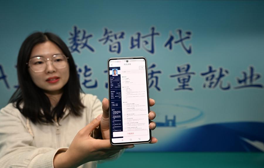 25 марта 2025 года, сотрудница Тяньцзиньского университета иностранных языков /г. Тяньцзинь, Северный Китай/ показывает резюме соискателя работы, сгенерированное с помощью ИИ. /Фото: Синьхуа/