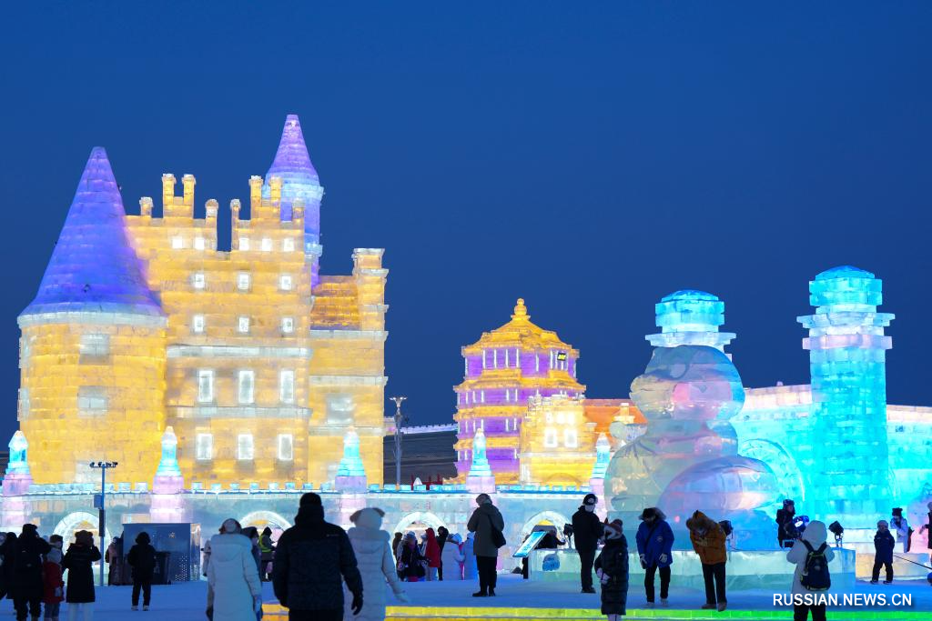 Харбин, 28 января /Синьхуа/ -- В разгар зимы парк "Большой мир льда и снега" в городе Харбин пров. Хэйлунцзян /Северо-Восточный Китай/ переливается яркими огнями и привлекает многочисленных туристов, приезжающих полюбоваться и насладиться очарованием льда и снега.