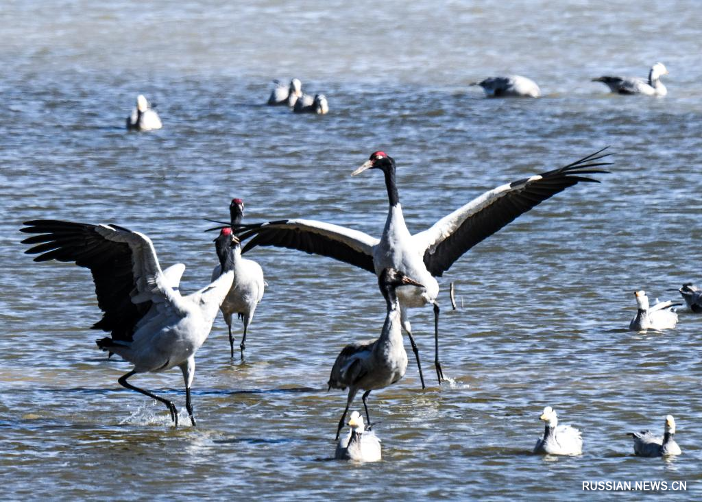 Перелетные птицы на водно-болотных угодьях на юго-западе Китая