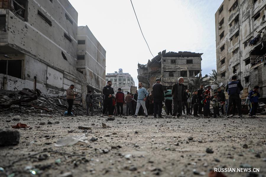 31 января, город Газа. Жители осматривают руины после израильского военного удара. /Фото: Синьхуа/