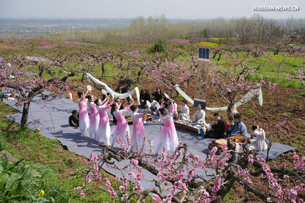 Сиань, 1 апреля /Синьхуа/ -- В настоящее время в районе Чанъань города Сиань /пров. Шэньси, Северо-Западный Китай/, расположенном у подножия горы Чжуннань в горной цепи Циньлин, цветут персиковые сады площадью более 6 800 му /примерно 447 га/. Различные культурно-туристические мероприятия, такие как поэтический салон в честь цветения персика, привлекают множество туристов, чтобы насладиться яркими весенними пейзажами.