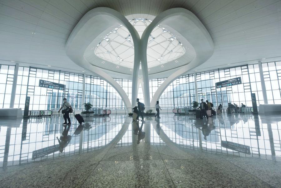 22 сентября 2022 года, пассажиры в терминале T4 международного аэропорта "Сяошань" в городе Ханчжоу /адм. центр пров. Чжэцзян, Восточный Китай/. /Фото: Синьхуа/