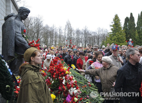 Жители эстонской столицы в воскресенье возложили венки и цветы к подножию памятника Воину-освободителю, известному также как "Бронзовый солдат", на Военном кладбище в Таллине.