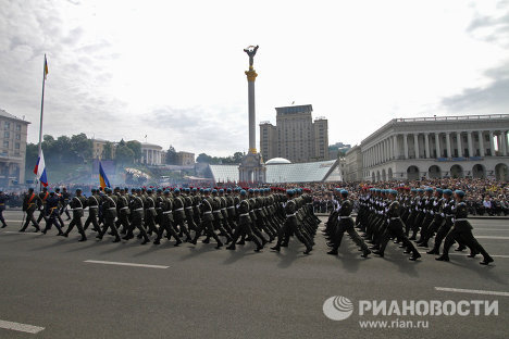 В Киеве состоялся парад с участием военной техники. В начале мероприятия была объявлена минута молчания по всем погибшим в Великой Отечественной войне