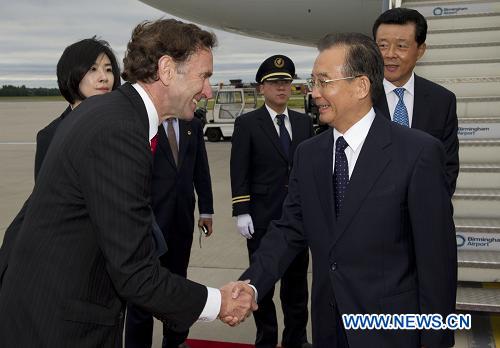 Бирмингем, 26 июня /Синьхуа/ -- Премьер Госсовета КНР Вэнь Цзябао прибыл в британский город Бирмингем, начав официальный визит в Великобританию.