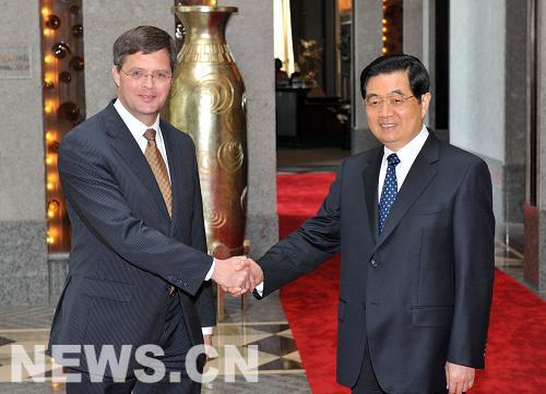 Шанхай, 1 мая /Синьхуа/ -- Председатель КНР Ху Цзиньтао сегодня встретился здесь с премьер-министром Нидерландов Яном Петером Балкененде, прибывшим для участия в открытии всемирной выставки ЭКСПО-2010.