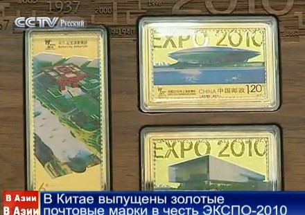 В Китае выпущены золотые почтовые марки в честь ЭКСПО-2010