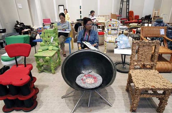 Оригинальные экологические стулья в объекте «Лондон» в Зоне передовой городской практики в Парке павильонов ЭКСПО