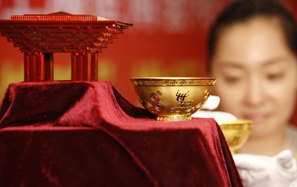 В Шанхае начали продавать золотые чашки для риса, посвященные ЭКСПО-2010