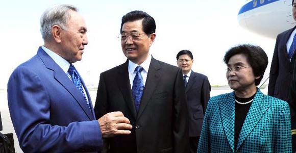 Ху Цзиньтао прибыл в Астану с государственным визитом в Казахстан и для участия на саммите ШОС