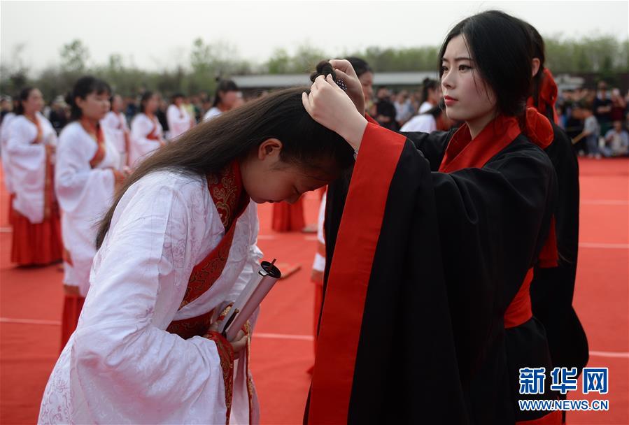 Пекин, 11 апреля /Синьхуанет/ -- 50 девушек в возрасте от 16 до 20 лет 9 апреля приняли участие в этой торжественной инициации, которая прошла в городе Сиань провинции Шэньси по случаю саньюэсань – 3-го дня 3-го месяца по китайскому лунному календарю. Ритуалы направлены на приобщение молодежи к древним правилам приличия. -0-