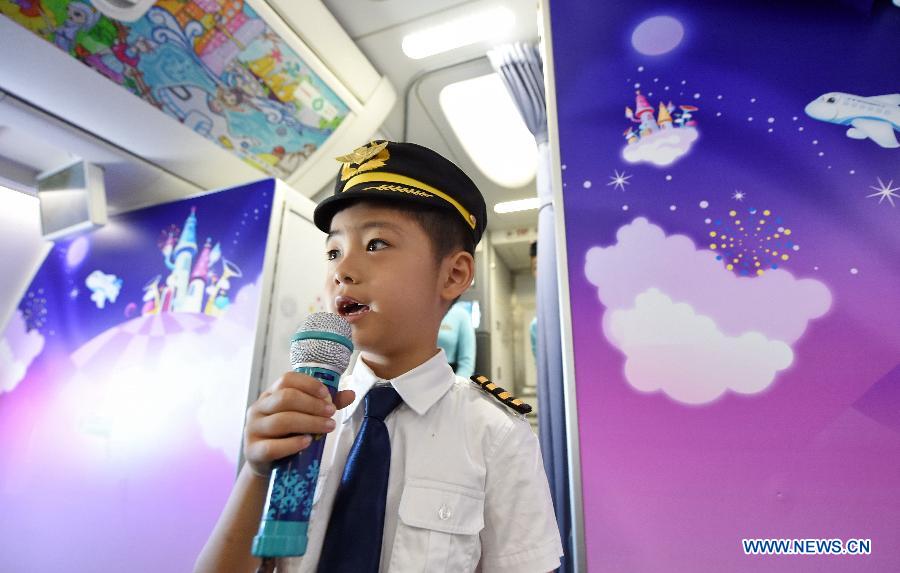 "Маленькие стюардессы" на борту самолета Сямэнь -- Куньмин (Синьхуа/Линь Шаньчуань)