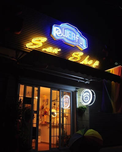 Такую нездоровую ситуацию девушка хочет изменить. Уникальный дизайн ее секс-шопа -- одна из попыток это сделать. В помещении все контрастных цветов: красного, зеленого, желтого. На двери табличка: "Стесняешься - не заходи! Некрасивым вход воспрещен! Скидки тем, у кого длиннее 18 см!" В отделе искусственных вагин в глаза бросается баннер с надписью "Товар одобрен на международных соревнованиях по мастурбации".