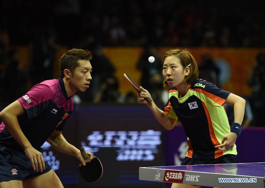 Китайско-южнокорейский дуэт вышел в финал смешанного разряда на ЧМ по настольному теннису-2015
