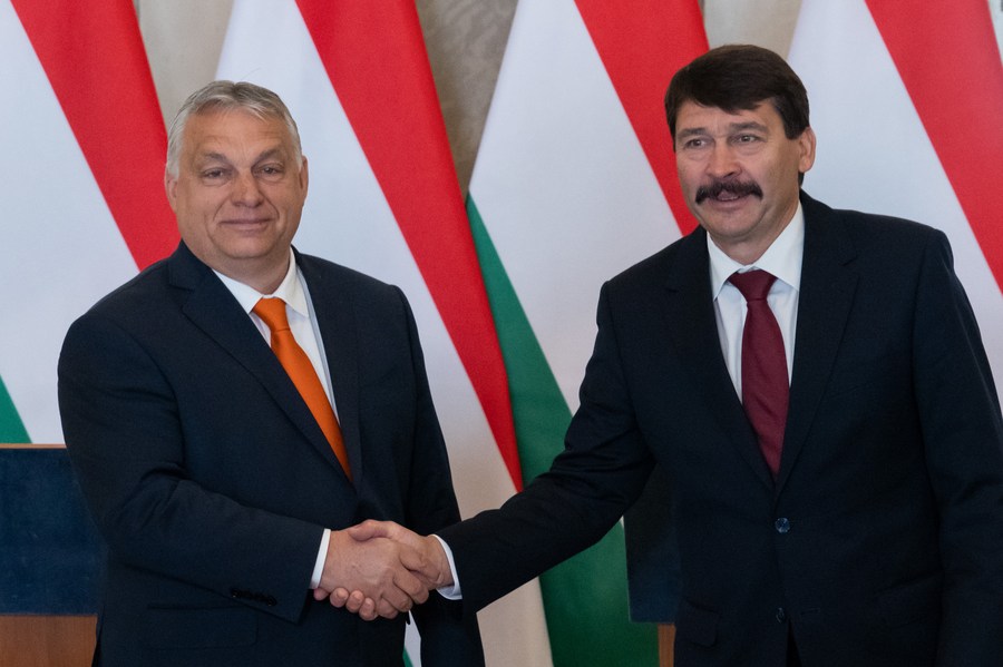 29 апреля, Будапешт. Президент Венгрии Янош Адер /справа/ и премьер-министр Виктор Орбан на совместной встрече с журналистами. /Фото: Синьхуа/