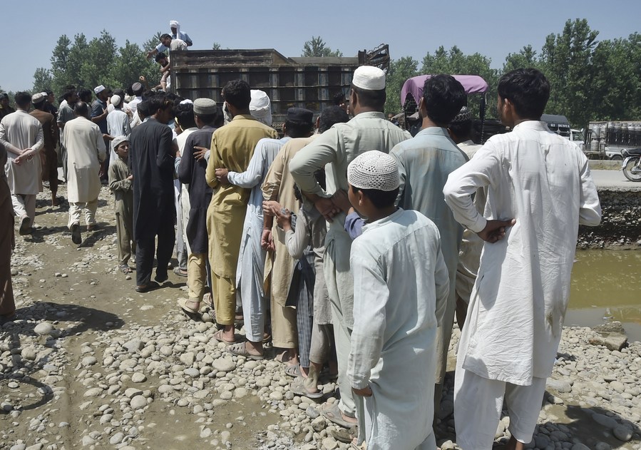 31 августа, Хайбер-Пахтунхва, Пакистан. Пострадавшие от наводнения стоят в очереди для получения гуманитарной помощи. /Фото: Синьхуа/
