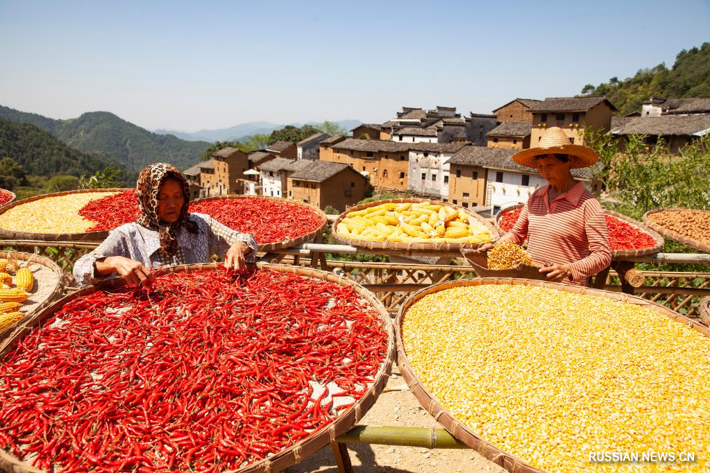 Осенние полевые работы и уборка урожая в Китае
