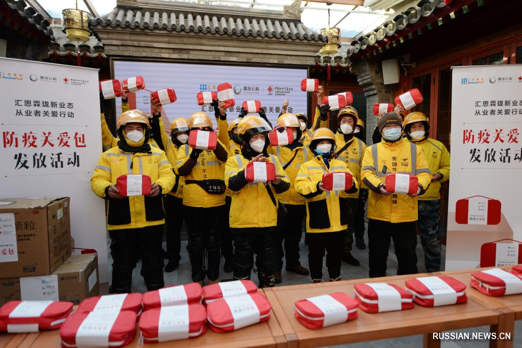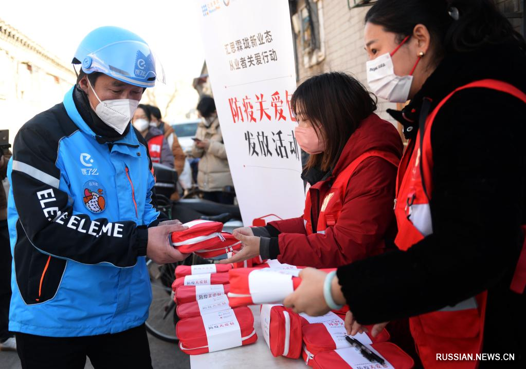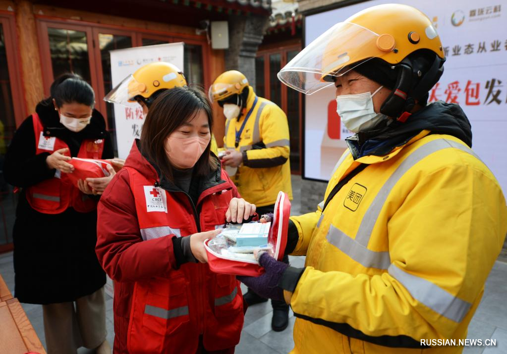 Пекин, 31 декабря /Синьхуа/ -- В преддверии Нового года Китайский фонд Красного креста совместно с заинтересованными предприятиями инициировал акцию по заботе о работниках в нарождающихся отраслях, в рамках которой было бесплатно роздано курьерам сферы экспресс-доставки в Пекине 2 тысячи "антиковидных мешочков" с носимыми противоэпидемическими средствами.