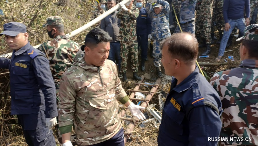 15 января, Покхара /Непал/. Спасатели работают на месте крушения пассажирского самолета авиакомпании Yeti Airlines. /Фото Синьхуа/